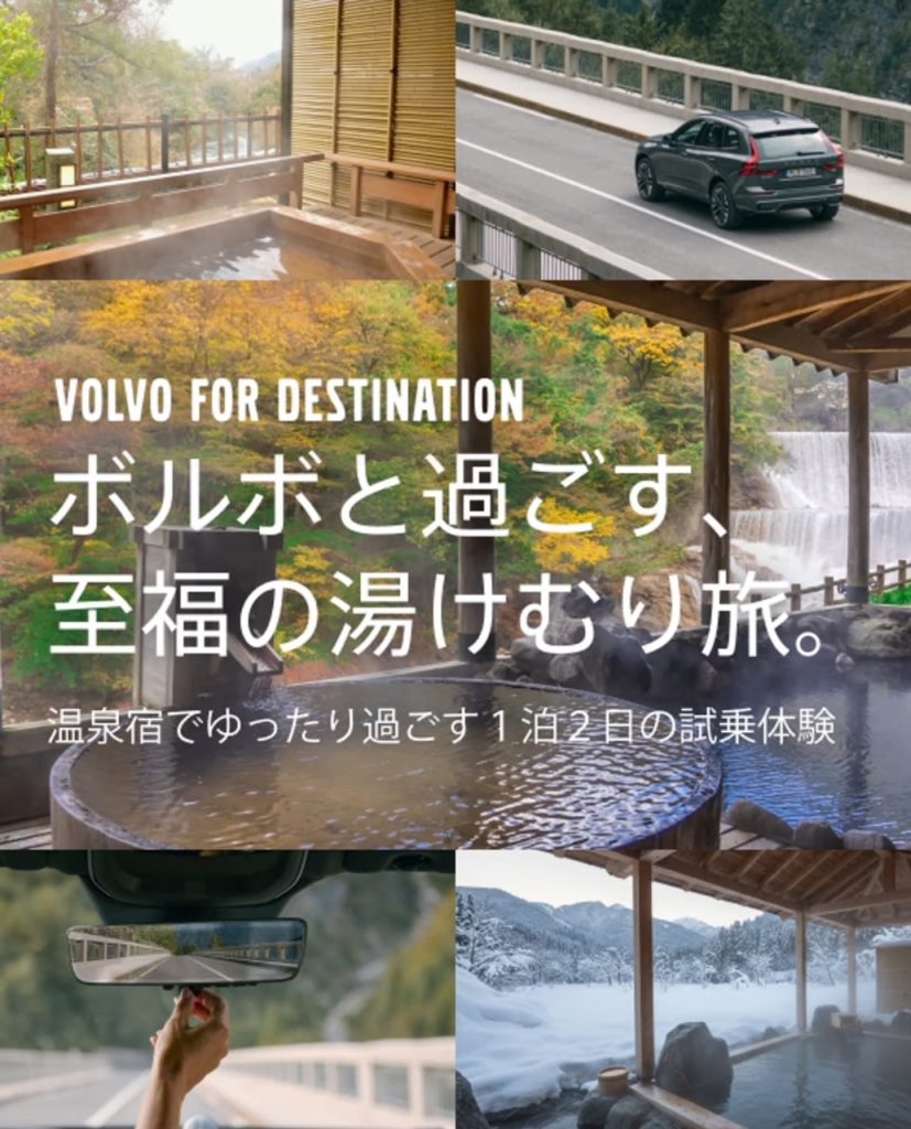 静寂に包まれたボルボの車内で、心ゆくまで移りゆく景色を堪能し、その先の湯けむりの街で、深い癒しと解放を。