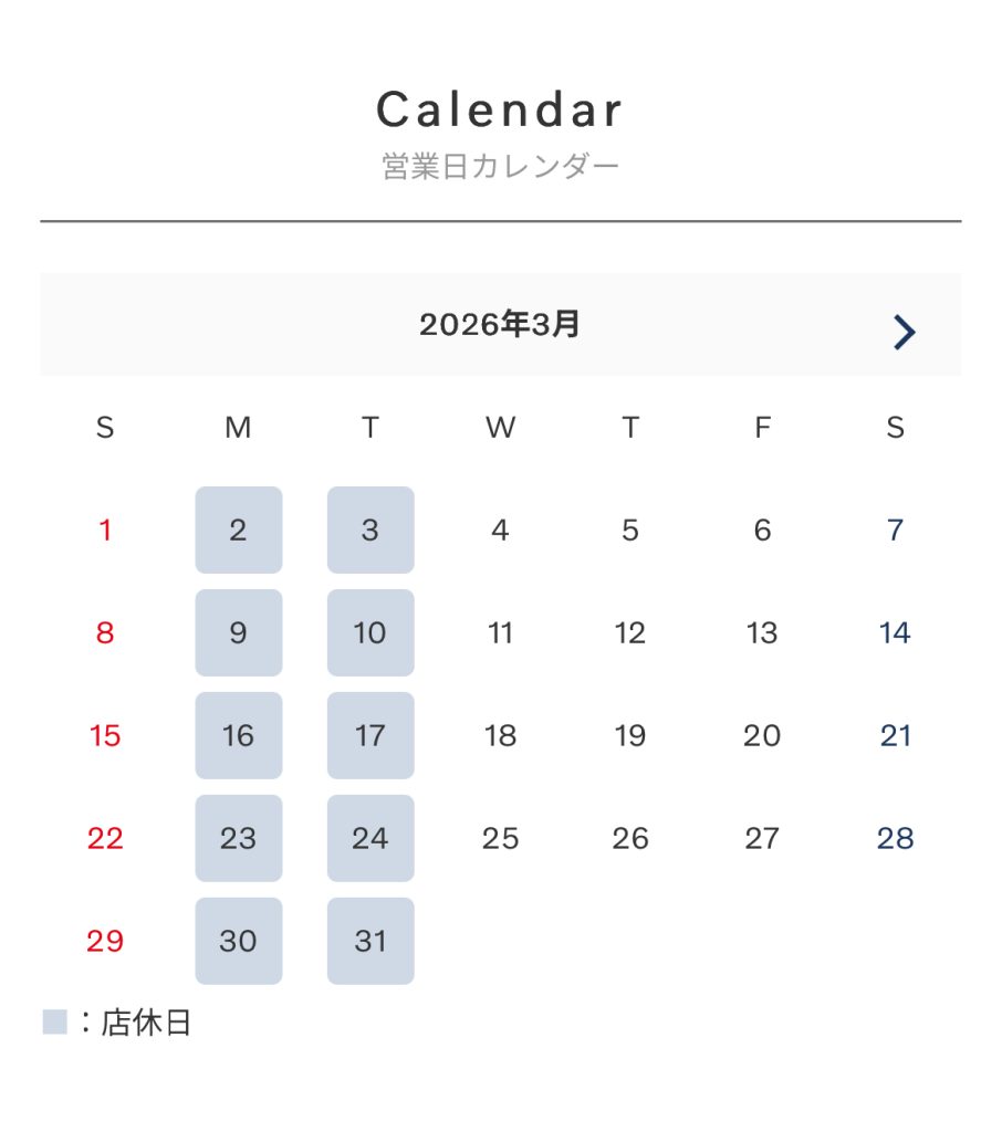 本日は3月定休日のお知らせをいたします。