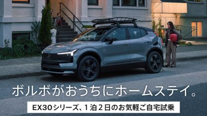 ボルボがおうちにホームステイ。新しいEX30シリーズで、1泊2日のお気軽ご自宅試乗キャンペーンのご案内です。北欧生まれのちょうどイイ電気自動車、ボルボのEX30に新しいモデルが加わり、5つのラインナップが登場。いつものおクルマはお預かりし、自由に使える充電...